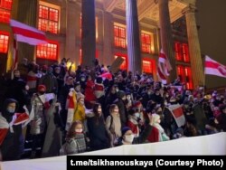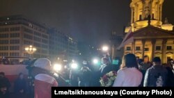 Увечары Ціханоўская ўзяла ўдзел у мітынгу беларускай дыяспары. Каля 300 чалавек са сьцягамі сабраліся каля Бэрлінскай канцэртнай залі, на якой была мастацкая інсталяцыя.