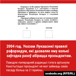 Рэфэрэндум 2004-га дазволіў Лукашэнку ўдзельнічаць у выбарах бясконца.
