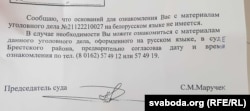 Адзін зь фігурантаў справы пружанскі паэт і пчаляр Мікола Папека (Сябра Беларускага ПЭН-цэнтру, Саюзу беларускіх пісьменьнікаў) доўга змагаўся за магчымасьць у азнаямленьні з матэрыяламі справы па-беларуску. Аднак атрымаў ад судзьдзі Маручанка пісьмовы адказ, у якім той зазначыў, што «падстаў для азнаямленьня з матэрыяламі справы на беларускай мове няма».