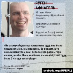 - Затрымалі 16 кастрычніка 2020 году. Асудзілі на 2 гады калёніі за «пратэсты» і «гвалт над міліцыяй».