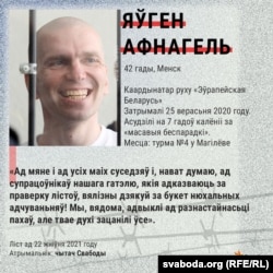 Калі вы лістуецеся зь вязьнямі і хочаце падзяліцца натхняльнымі фрагмэнтамі зь іхных лістоў, пішыце на radiosvaboda at gmail. com або ў нашыя сацыяльныя сеткі з пазнакай «Цытаты праз краты».