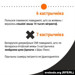 - Прэс-сакратар каардынатара спэцслужбаў Польшчы Станіслаў Жарын 27 верасьня заявіў, што 20% затрыманых мігрантаў маюць сувязі з Расеяй, пра што сьведчаць знойдзеныя доказы. Міністар унутраных спраў і адміністрацыі Мар’юш Каміньскі сказаў, што беларускія памежнікі даюць мігрантам псыхатропныя сродкі, у тым ліку дзецям.