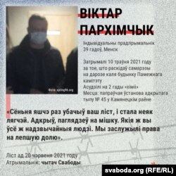 - Затрымалі 25 жніўня 2021 году за пратэсты 10 жніўня 2020 году