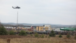 Як сьведчыць здымка зь верталёта польскага патруля, практычна ўся пляцоўка памежнага пераходу ўжо занятая, частка людзей яшчэ знаходзіцца не на дарозе, а побач на траве. Насупраць стаяць польскія паліцыянты, а за сьпінамі мігрантаў — беларускія сілавікі ў камуфляжы.