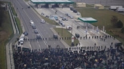 Беларускія сілавікі стаяць за сьпінамі мігрантаў