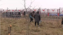 Мігранты зноў масава вярнуліся на праезную частку, дзе знаходзіцца пункт пропуску. Але асобныя іх суайчыньнікі спрабуюць рукамі зьнішчаць калючы дрот на мяжы.