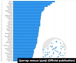 - У нізе рэйтынгу — гарады на ўсходзе Беларусі зь ня самай лепшай дэмаграфіяй, якасьцю жыцьця, узаемадзеяньня з уладамі і турыстычнай прывабнасьцю.