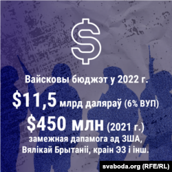 З гэтай сумы на ўтрыманьне Ўзброеных сілаў будзе накіравана 133,5 мільярда грыўняў (амаль 5 мільярдаў даляраў у эквіваленце), у тым ліку 28 мільярдаў грыўняў (амаль 1 мільярд даляраў) выдзеляць на закуп вайсковай тэхнікі і ўзбраеньня.