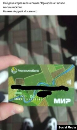 У мазырскіх суполках «УКантакце» таксама ёсьць абвестка пра знойдзеную расейскую банкаўскую картку сыстэмы «Мир».