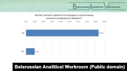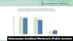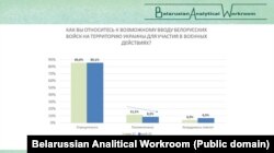 Паводле сакавіцкага апытаньня Беларускай аналітычнай майстэрні толькі 11% выказваліся за ўдзел беларускай арміі ў вайне, цяпер гэтая доля зьнізілася, хаця і нязначна.
