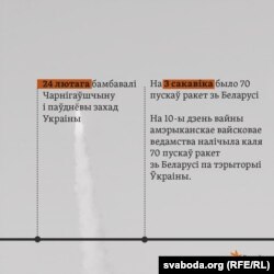 «З тэрыторыі Беларусі было 1211 вылетаў авіяцыі — больш за 20% ад агульнай колькасьці — і 61 пуск крылатых ракет тыпу „Іскандэр“ з мэтай паражэньня аб’ектаў крытычнай інфраструктуры Ўкраіны».