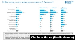 Дарэчы, грамадзкая думка гэта выдатна адчувае. У лістападзе летась Chatham House у сваім чарговым апытаньні гарадзкога насельніцтва Беларусі задаў пытаньне: «На каго, на ваш погляд, у першую чаргу абапіраецца Аляксандар Лукашэнка?». Найбольшая доля апытаных — 70% — адказалі «На вайскоўцаў, МУС, КДБ». Для параўнаньня: опцыю «на прэзыдэнцкую вэртыкаль» пазначылі 37%, «на простых людзей» — усяго 13%.