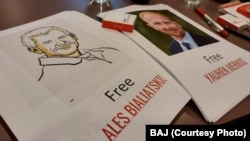 На сходзе правялі акцыю салідарнасьці з журналістам-палітвязьнем Яўгенам Меркісам і зьняволеным праваабаронцам ляўрэатам Нобэлеўскай прэміі міру Алесем Бяляцкім.