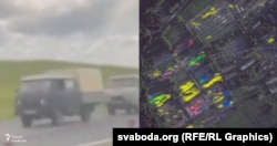 Мы падлічылі колькасьць аўтамабільнай тэхнікі ў вайсковым лягеры каля вёскі Цэль Асіповіцага раёну Photo: svaboda.org (RFE/RL Graphics)