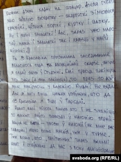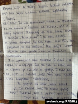 Вельмі непакоюся, калі чую, што там, у вас на волі вельмі небясьпечная абстаноўка з „карона-вірусам“. Беражы сябе, мама! Я ведаю, як ты любіш пахадзіць па Бярозаўцы! Але, прашу цябе, сьцеражыся! Хоць маску насі. Упэўнены, што ты так і зробіш.