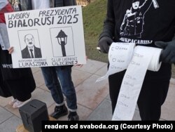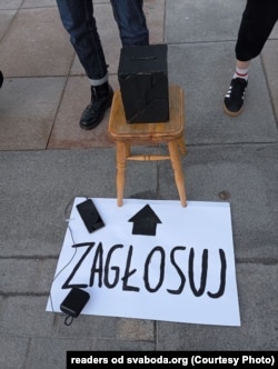 Беларусы, якія жывуць у польскім Любліне, правялі акцыю-пэрформанс — арганізавалі «выбарчы ўчастак», на якім можна было «прагаласаваць» за свайго кандыдата: Аляксандра Лукашэнку або… ліхтарны слуп. Замест бюлетэняў — туалетная папера.