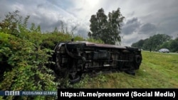 Але ня змог утрымаць мікрааўтобус на мокрай дзьвюхпалоснай шашы М10, той вылецеў пад адхон і перакуліўся.