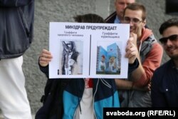 Гэтак і не прагучала ўрачыстых прамоў на адкрыцьці графіці з выявай беларускага хлопчыка і рускай дзяўчынкі на вуліцы Магілёўскай у Менску.