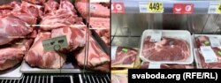 Вялікая розьніца ў цэнах на мяса (мы бяром шыйную частку сьвініны). У Менску кіляграм каштуе 10,89 BYN, у маскоўскім «Ашане» — 15,4 BYN.