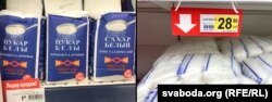 Цукар і хлеб. У Менску кіляграм гарадзейскага ці скідзельскага цукру каштуюць 1,59 BYN, у Маскве расейскі аналяг — 0,99 BYN. Дарэчы, танны цукар з Расеі часта трапляе і ў беларускія крамы, прывабліваючы пакупнікоў сваёй цаной.