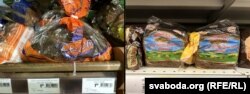 Што да хлеба, то тут адрозьненьне не такое істотнае. Мы набылі паўкіляграмовы бохан бездражджавога «Добрага», які выпякаюць у Слуцку, і параўноўвалі яго з маскоўскім «Барадзінскім новым»: 1 BYN супраць 0,8 BYN.