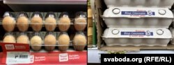 Прыкладна адна цана на малако з тлустасьцю 2,5% (у Менску — 1,38 BYN, у Маскве — 1,4 BYN) і яйкі гатунку С-1 (у Менску — 2,09 BYN, у Маскве — 2 BYN).