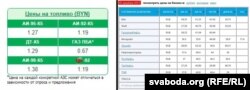 Нязначна таньнейшае ў Менску паліва маркі А-95, яно каштуе 1,27 BYN, у Маскве сярэдняя цана — 1,4 BYN.
