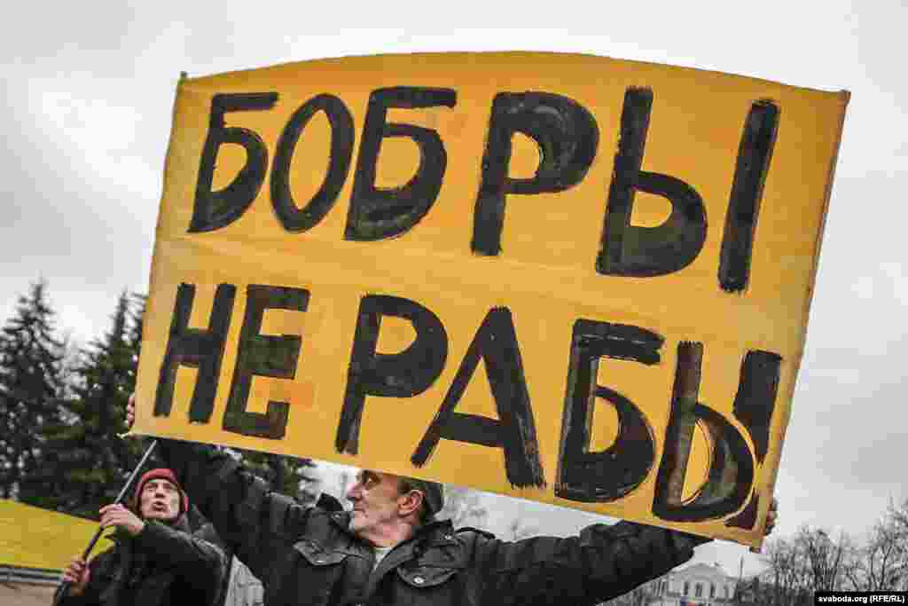 Бабруйская акцыя прайшла фактычна без арганізатараў. Людзі трымалі плякаты «Праз дэкрэты і налогі хутка ўсе працягнем ногі», «Не дэкрэту №3», «Заплаці падаткі і сьпі галодным», «Разам – мы сіла», «Дэкрэту – не, рабоце – так», гукалі «Нет декрету №3, Лукашенко, уходи!», «Сыходзь!» і «Свабоду!».