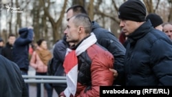 Галіна Абакунчык расказала, што ва ўсіх затрыманых пры сабе былі бел-чырвона-белыя сьцяжкі. Яе таксама затрымалі, пабачыўшы сьцяжок.