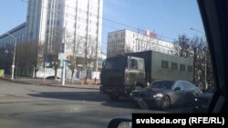 У цэнтар Менску зьяжджаюцца аўтазакі — карэспандэнт Свабоды бачыў чатыры за хвіліну на праспэкце Незалежнасьці.