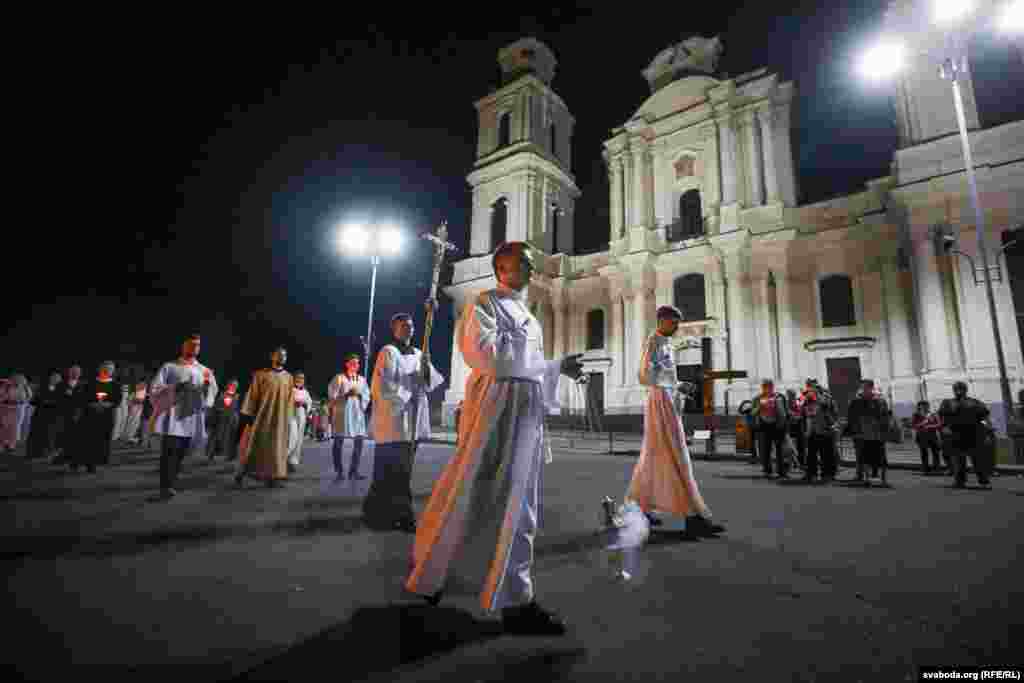 Начная працэсія са сьвечкамі і копіяй абраза Маці Божай Будслаўскай.