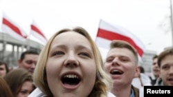 Людзі спыніліся на ўваходзе ў парк Дружбы народаў. Ніхто не разыходзіцца, скандуюць «Жыве Беларусь!» і сьпяваюць песьні. Пляцоўка для мітынгу абгароджаная, стаяць мэталашукальнікі. Аднак на пляцоўку для мітынгу ніхто з арганізатараў і ўдзельнікаў ня ідзе.