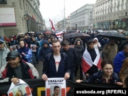 Першы «Марш абураных беларусаў», што быў у Менску 17 лютага, за 100 сэкундаў