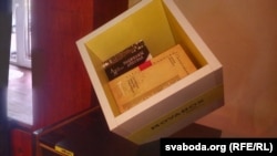 У апошняй, дзясятай, кавярні я ўжо і сама ўзяла капучына і пасядзела ва ўтульнай залі Buffet, якая разьмешчаная ў адным будынку з кнігарняй «Белкніга». На другім паверсе кавярні аказаўся ня толькі Movabox, але і ўсё памяшканьне было ўпрыгожана адпаведна тэматыцы праекту: на ўсю чорную сьцяну для маляваньня крэйдай расьцягнуўся цмок (герой кнігі Людмілы Рублеўскай), у рамах разьвешаны постэры ў стылі Movabox, разьмешчаныя хэштэг і адрас сайта праекту. Аднак у «мовабоксе» я знайшла шмат «левых» кніг: старыя нямецкія фотаальбомы, Дзюма ў патрапаным пераплёце і расейскім перакладзе... Як і сказала барыста, тут, на другім паверсе, няма кантролю, наведнікі пхаюць у бокс усё, што кепска ляжыць, не адсочваючы канцэпцыю чытаньня па-беларуску.