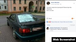 Насупраць прахадной Міністэрства абароны Беларусі невядомы паставіў машыну, пад шклом якой быў плякат са словамі «Армія, дзе вешаюць нашых дзяцей — гэта ня армія. Гэта г***о. Чый сын наступны?».