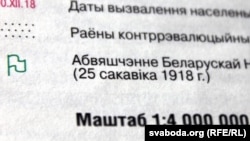 І сапраўды: на адпаведнай гістарычнай мапе ўтварэньне БНР пазначана белым «капітулянцкім» сьцяжком. Можа, выпадкова? Вырашыў прыгледзецца больш пільна: як жа падаюць гэты пэрыяд беларускай гісторыі ў «вучэбным дапаможніку, дапушчаным Міністэрствам адукацыі Рэспублікі Беларусь», якім карыстаюцца ўсе беларускія старшаклясьнікі?