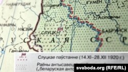 А вось Слуцкі збройны чын 1920 году на адпаведнай мапе пазначаны бела-бэзава-белым сьцяжком. Мапы паўсюль паўнаколерныя, спаслацца на тое, што мастак такім чынам проста схематычна паказаў бел-чырвона-белы сьцяг — не выпадае. Так што прычына тут, выглядае, адна: пільны цэнзарскі нагляд. Беларускі нацыянальны рух у школьным падручніку можна было пазначаць, відаць, любымі колерамі — апрача тых, пад якімі ён сапраўды існаваў і існуе.