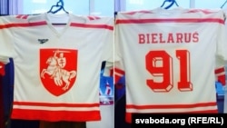 «Такая ідэя некалькі тыдняў таму ўзьнікла ў асяродзьдзі саміх заўзятараў: маўляў, неўзабаве пачынаецца чэмпіянат сьвету, і хацелася б мець майкі з нацыянальнай атрыбутыкай — ня хочацца надзяваць з афіцыйным гербам. Мы падумалі-падумалі, знайшлі фатаздымак пачатку 1990-х, на якім хакейная зборная Беларусі пазіруе ў швэдрах з „Пагоняй“, прапанавалі свой варыянт. Праўда, у тым выпадку быў чырвоны, хатні варыянт формы, а мы зрабілі белы — гасьцявы. Наперадзе вершнік, ззаду надпіс лацінскімі літарамі Bielarus і нумар 91 — у гонар атрыманьня краінай незалежнасьці ў 1991 годзе».