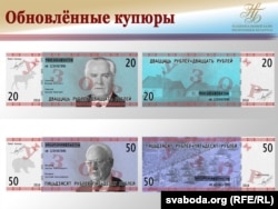 Нацыянальны банк Беларусі паведаміў пра абноўленыя вэрсіі дэнамінаваных беларускіх рублёў. Неўзабаве дэталёвыя апісаньні купюраў маюць зьявіцца на сайце Нацбанку. Дэнамінацыя не адкладаецца, яна будзе праведзеная ў ліпені 2016 году. Па-ранейшаму ад 1 красавіка прапануецца адначасова пазначаць цэны ў цяперашніх тысячах і дэнамінаваных рублях.