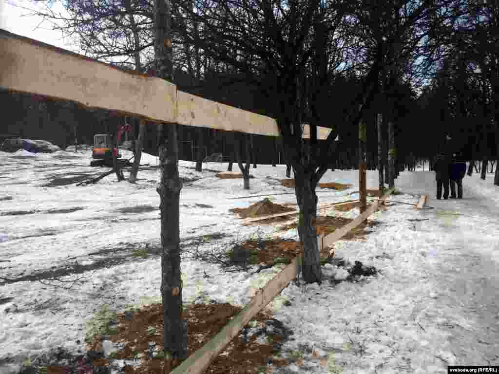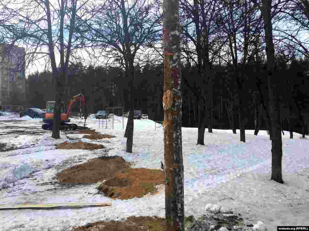 Рашэньне аб гэтай будоўлі, як кажуць мясцовыя жыхары, было прынята ў студзені гэтага году Менгарвыканкамам. Учора ўвечары зьявіліся будаўнічыя машыны, і ад ранку пачала актыўна разгортвацца будаўнічая пляцоўка — высякаюцца дрэвы, робяцца сьвідравіны, усталёўваецца агароджа, выгружаюцца будматэрыялы.
