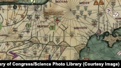 Крым на Каталёнскім атлясе сьвету (Atles català). А. і Е. Крэскесы, в. Маёрка, 1375. Захоўваецца ў Нацыянальнай бібліятэцы Францыі. Выява прадстаўленая Радыё Свабода - Library of Congress/Science Photo Library (Courtesy Image)