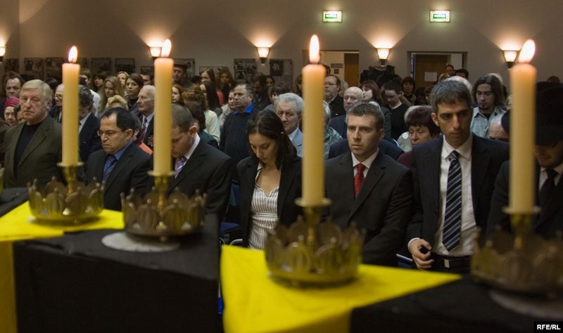 Ахвяраў галакосту памянулі хвілінай маўчаньня. Пасьля гэтага прагучала памінальная малітва “Кадыш”.